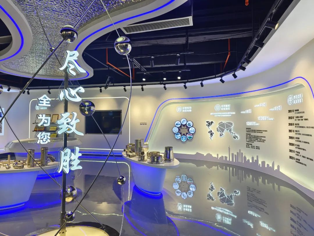 管道場(chǎng)景應(yīng)用展廳是運(yùn)營(yíng)中心的核心亮點(diǎn),展廳將商品房不銹鋼管道系統(tǒng)、不銹鋼管道循環(huán)活水系統(tǒng)、全屋健康用水系統(tǒng)專業(yè)化與系統(tǒng)化的展示,讓我們的產(chǎn)品應(yīng)用場(chǎng)景化的體現(xiàn)出來(lái)。